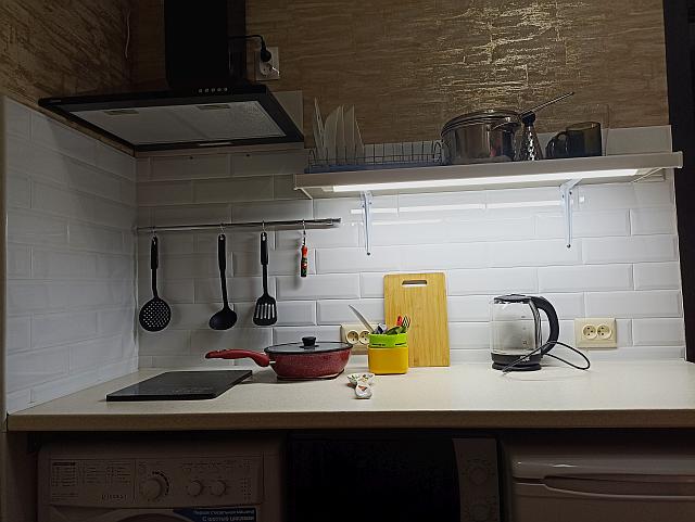 🌿 Полноценная кухня с холодильником, СВЧ печью, электрочайником и всей необходимой посудой и кухонной утварью