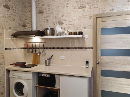 🌿 Полноценная кухня с холодильником, СВЧ печью, электрочайником и всей необходимой посудой и кухонной утварью
